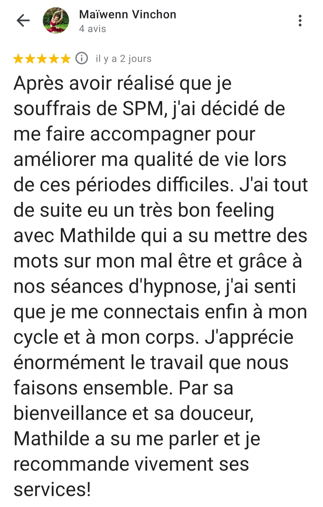 • Accompagner les femmes à se libérer du SPM et retrouver de l’apaisement dans leur vie, c’est un métier magique. C’est ce qui me fait vibrer et me donne de l’énergie chaque jour.